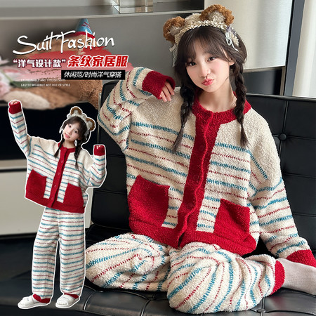 1*7下载“2536款开衫条纹半边绒家居服套装”图片包